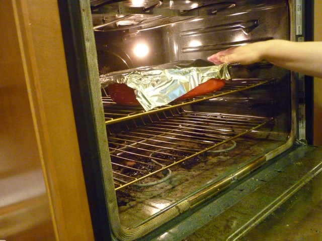 Pop the serving pan into a warm 225 degree oven to rest. Hmmm, I think it's time to clean the oven 🙂