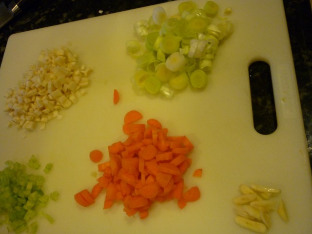 Next up, veggies ready for the pot.