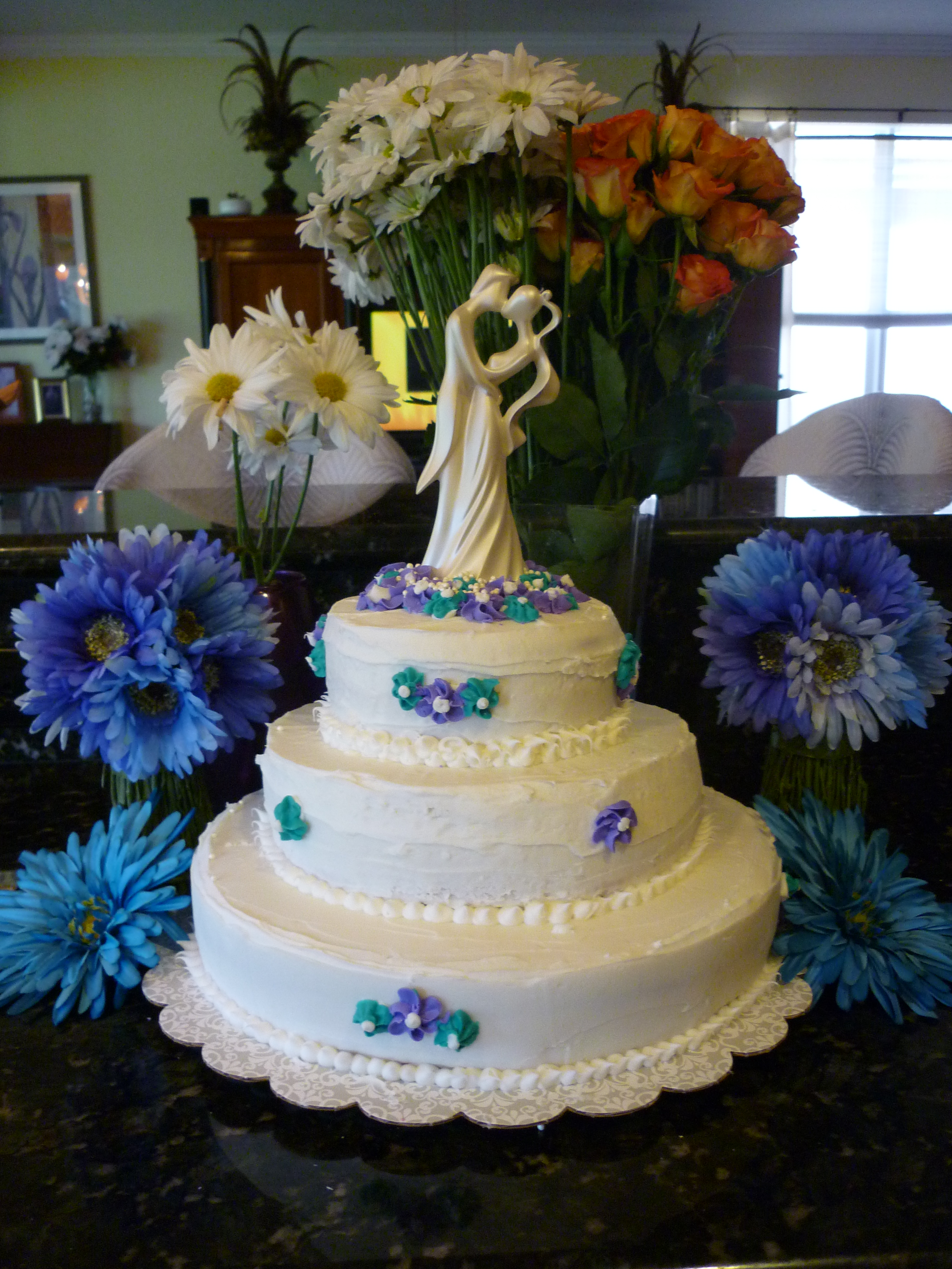 Simple Blue and Purple themed wedding cake for my Sister Jill and Adam