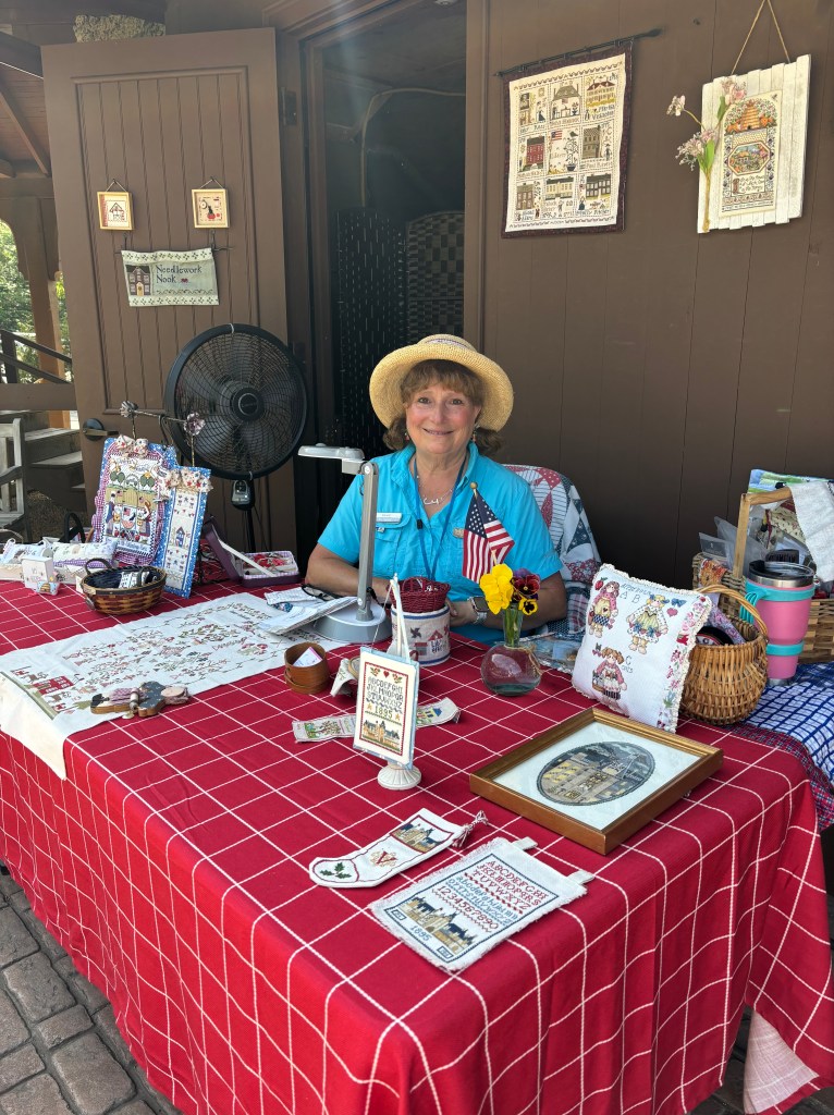 So, I love working at Biltmore Estate. I’ve worked there over 8 years and it never gets old. As a heritage crafter for Antler Hill Barn on the Estate, I specialize in needlework. Often I get to work along side our Blacksmith Steve and Our master broom maker Marlow, sharing our creations with the many visitors who come to enjoy the beautiful golden-age estate and grounds. We also feature a weaver, spinner, woodworker, basket maker and corn husk doll creator. It’s a wonderful place to let your creative juices flow!